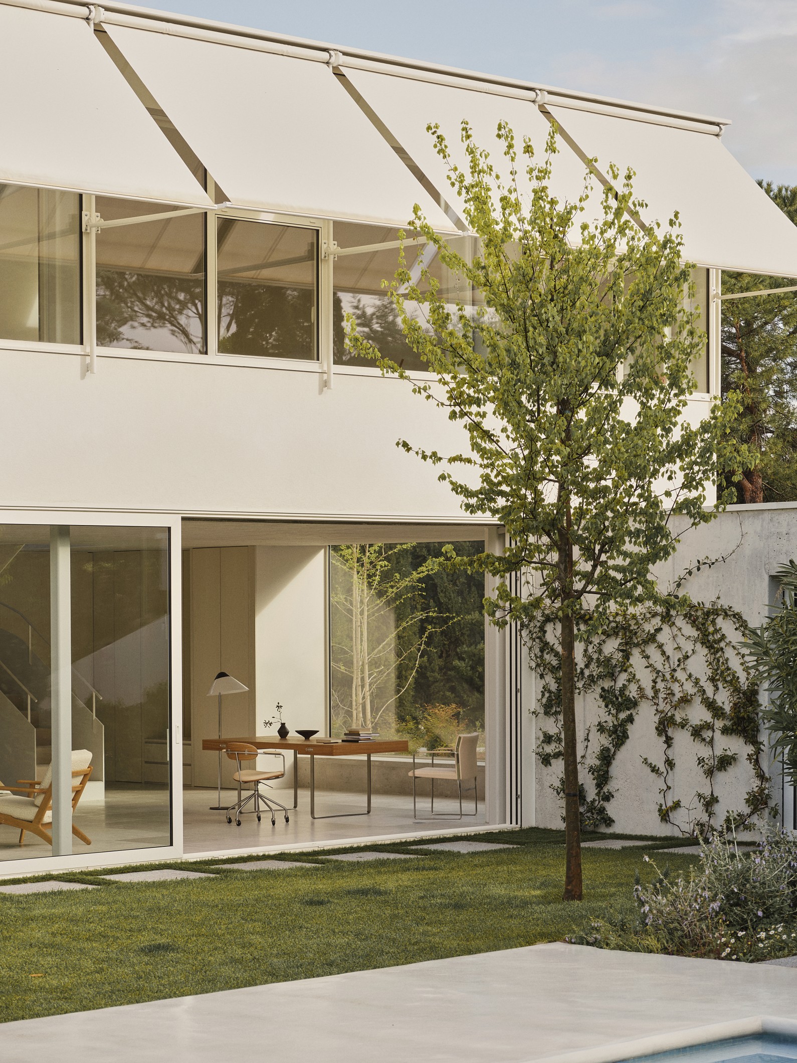 De dynamische schuine poten en royaal geproportioneerde armleuningen weerspiegelen de klassieke kenmerken van Wegners eerdere creaties. De serie is vanuit elke hoek mooi en sluit naadloos aan bij andere meubelen uit de Wegner-collectie van Carl Hansen & Søn.