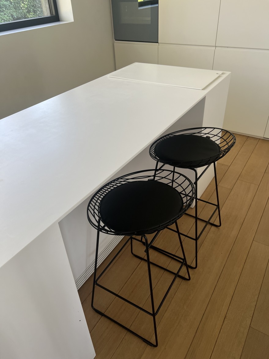 Prijs van de WIRE-eetkamerstoel: vanaf 397 Euro + BTW, en zitkussen vanaf 136 Euro + BTW. Lage barkruk (hoogte 68 cm): vanaf 380 Euro + BTW met zitkussen vanaf 91 Euro + BTW.